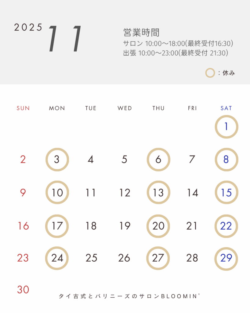 🍂11月の営業カレンダー🍂